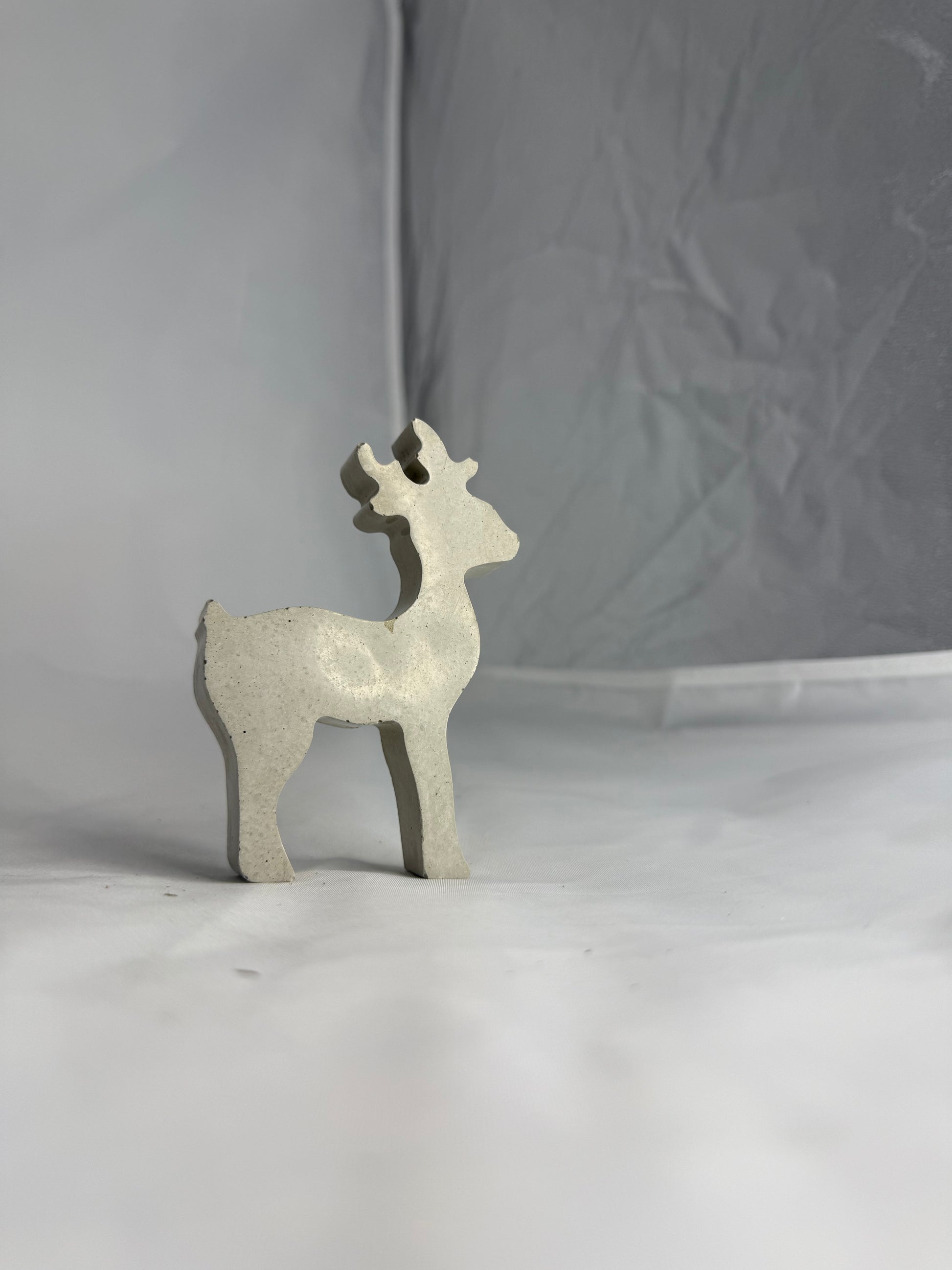 Das Betonreh mit zwei Beinen ist ein außergewöhnliches, modernes Deko-Highlight, das sofort ins Auge fällt. Mit seinem reduzierten, nahezu schwebenden Design bringt es eine besondere Leichtigkeit in deine Weihnachts- und Winterdekoration. Gefertigt aus hochwertigem, massivem Beton, kombiniert es klare Formen mit einer natürlichen, grauen Oberfläche – jedes Stück ein kunstvolles Unikat.